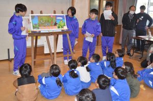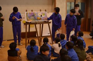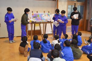 10月30日、英語活動の一環として中学生による英語の絵本の読み聞かせを行いました。