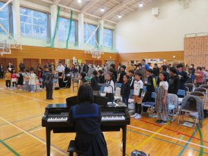 11月7日(金)に「芦安小中白峰祭」を開催しました。多くの保護者の皆様、地域の皆様に参観をいただき、ありがとうございました。 小学生は、全校での合唱「世界がひとつになるまで」と合奏「風のとおり道」を披露しました。そして4年生以上は中学生とともに太鼓の演奏を行いました。自分だけでは成し得ないことを、仲間とともにチャレンジしたことで、すばらしい「白峰祭」を創り上げることができました。
