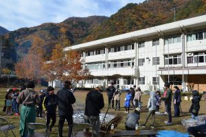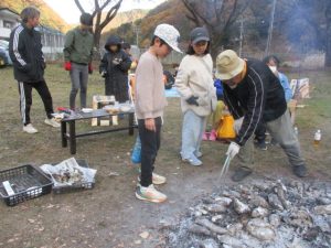 秋の深まりを感じる11月18日、小中学校全校で「焼きいも体験」を行いました。