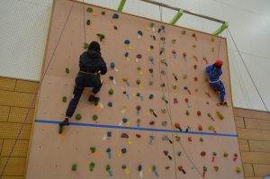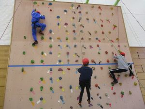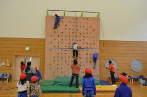 本校の体育館にはボルダリングウォールが設置されています。 1月29日、地域の指導者の皆様のご協力を得て、ボルダリング体験教室を行いました。冬場の運動不足解消のために始められたそうです。学校の施設、地域の指導者の存在など条件が整ったからこその、本校独自の活動です。 子どもたちは、課題に挑戦しながら体の使い方を工夫し、楽しそうに取り組んでいました。 また、一部の教職員も挑戦し、体育館は笑顔と仲間への温かい声援に包まれました。