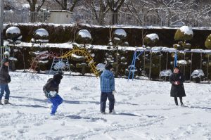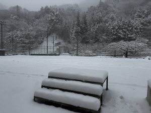 2月7日から8日の土日にかけて雪が降り、本校周辺は一面の銀世界となりました。 校庭や山々が白く染まり、冬ならではの美しい景色が広がりました。 9日の月曜日には、子どもたちが雪の感触を楽しみながら、かまくら作りや雪遊びをする姿が見られました。寒さの中にも温かな笑顔があふれ、自然の恵みを感じる貴重な時間となりました。